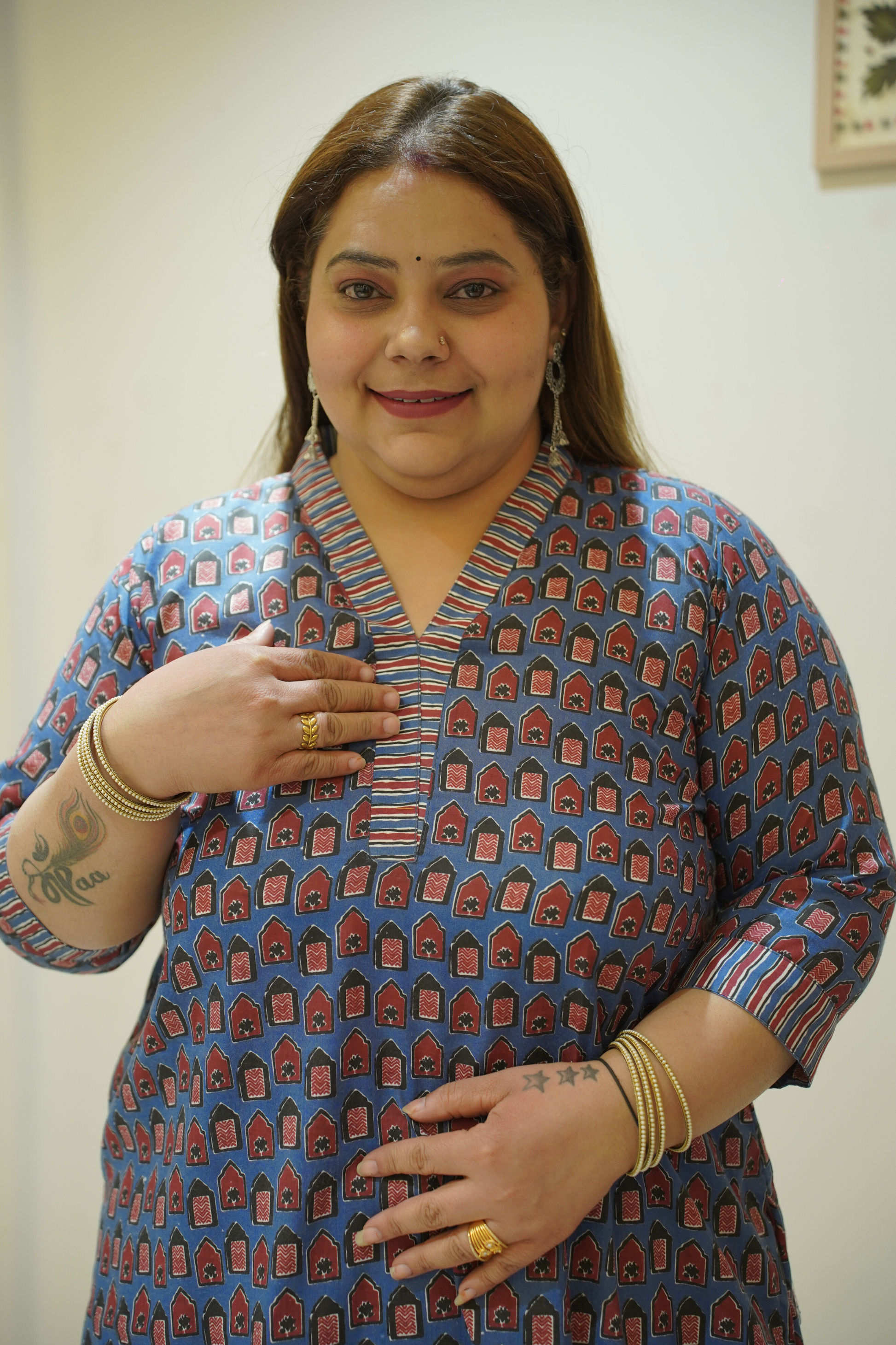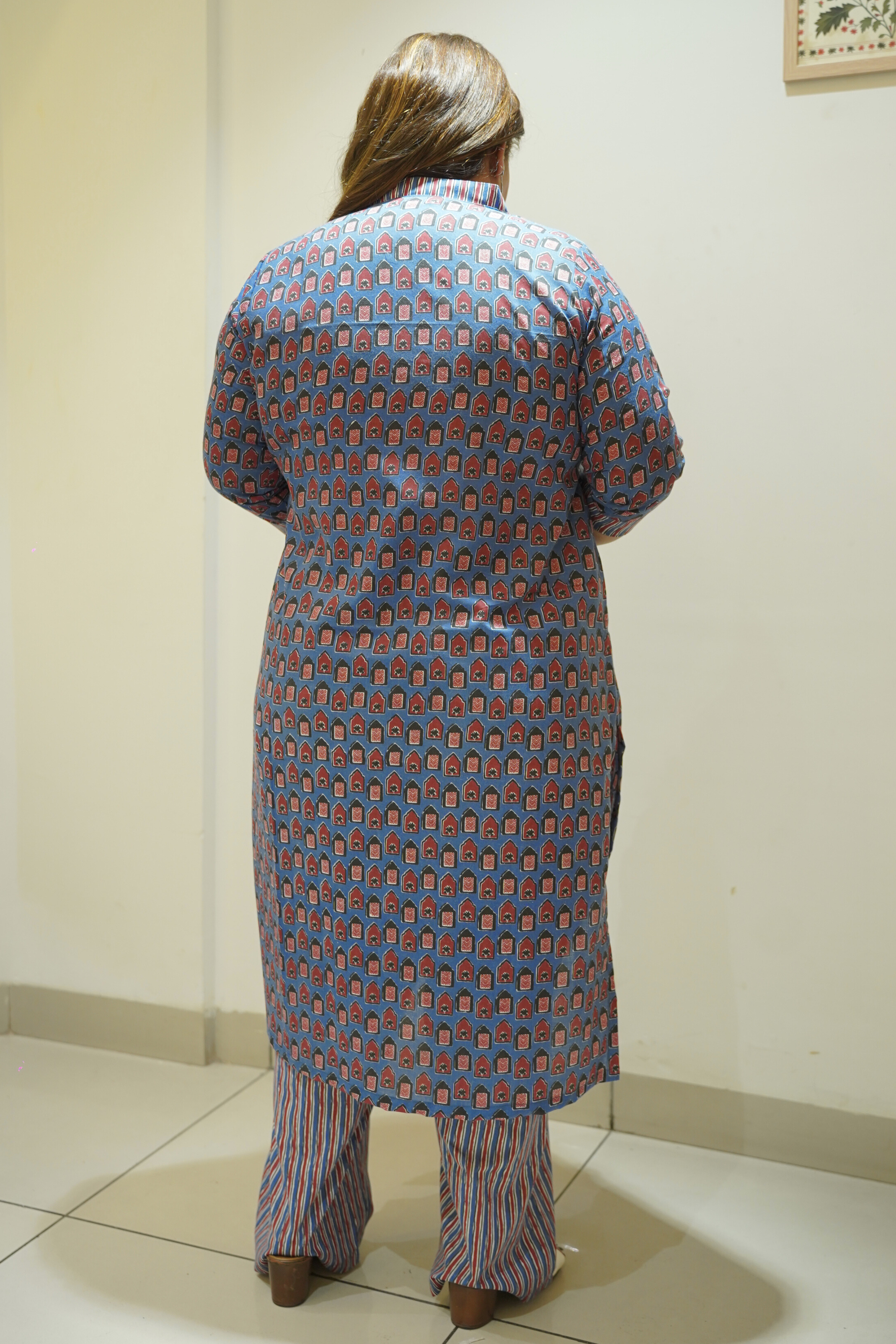 - Blue kurta with classic block-print motifs