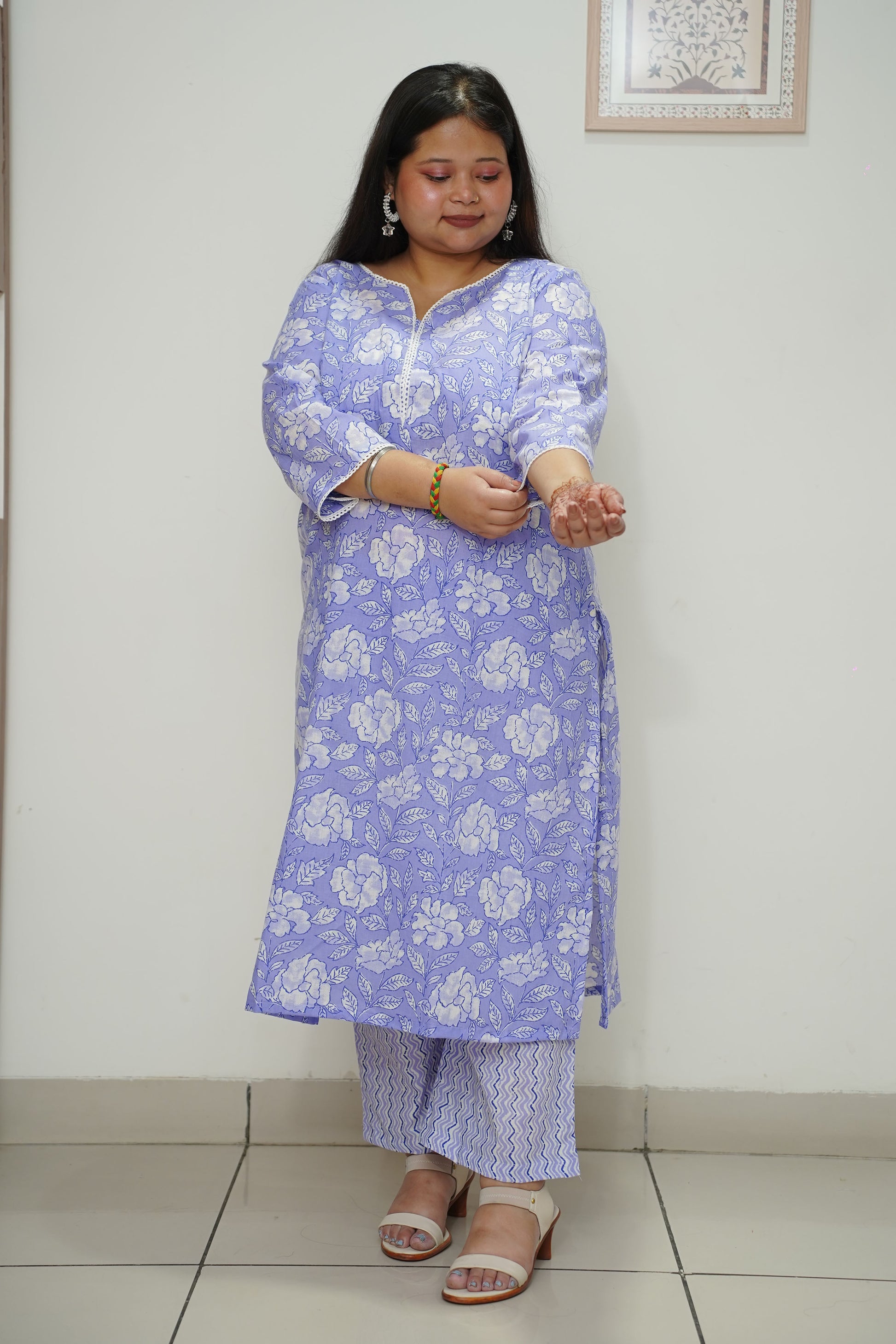 - Lavender cotton with floral print