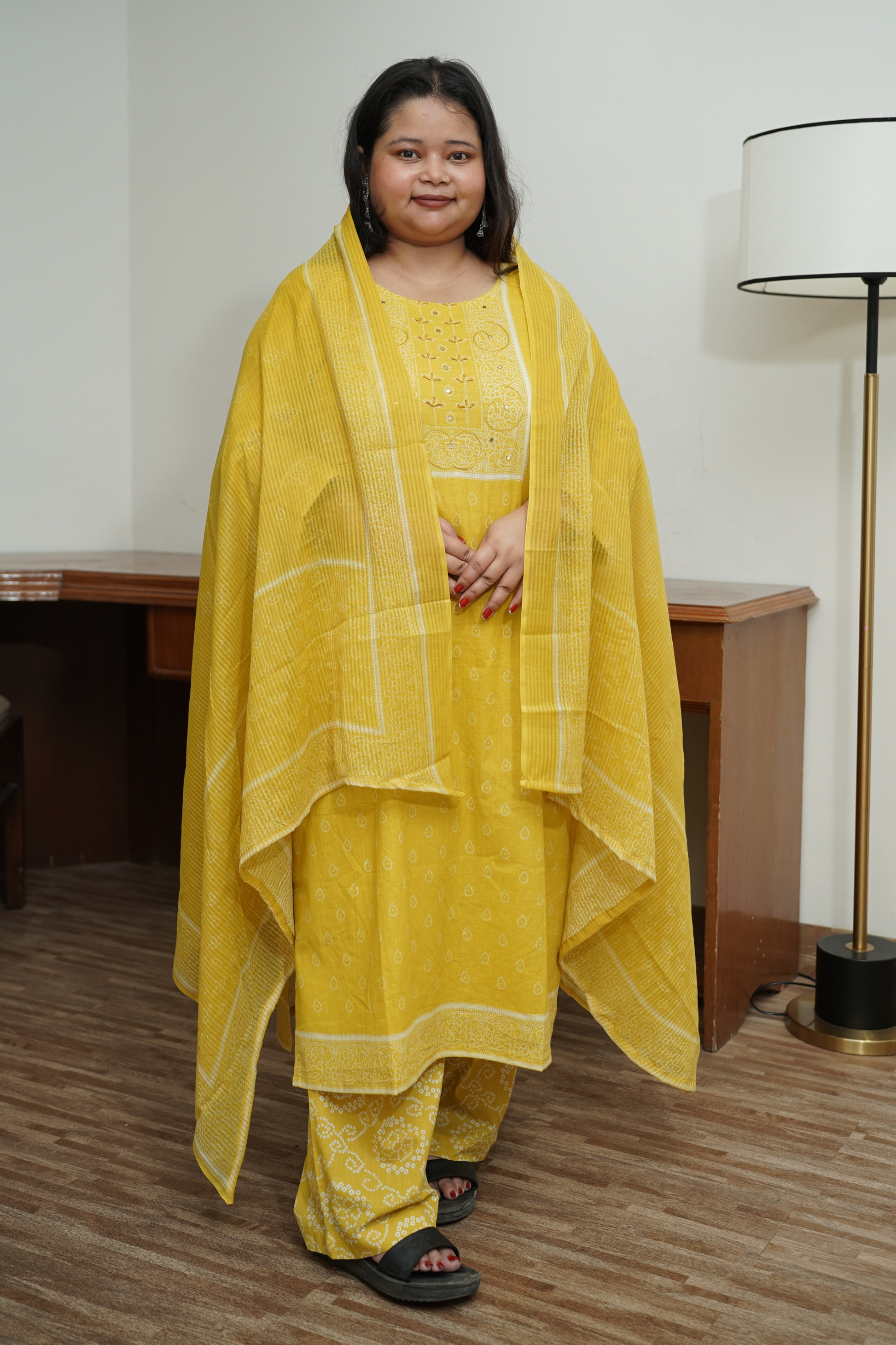 A complete 3-piece set – Top, Bottom & Dupatta included